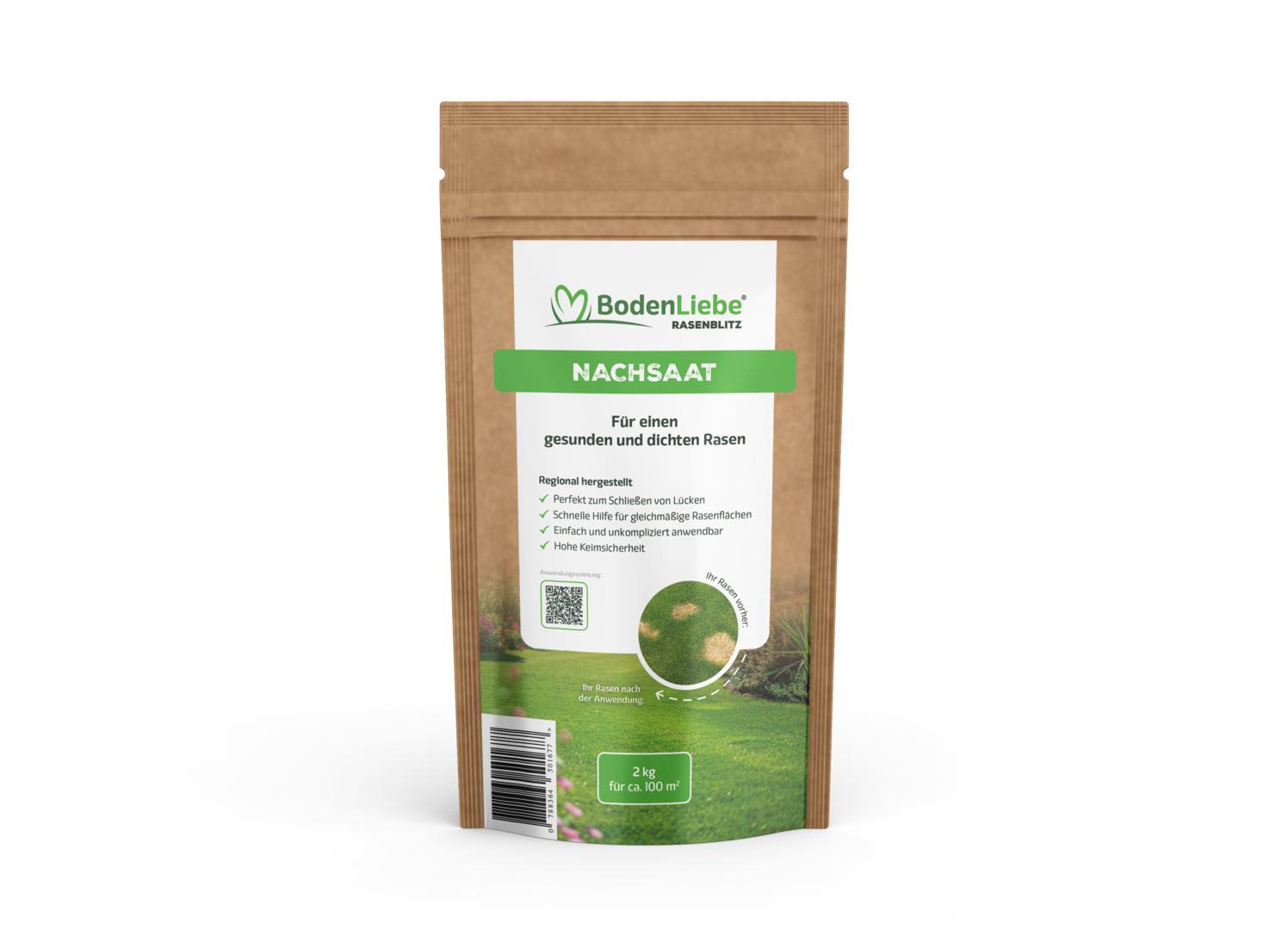 Mit der Premium-Nachsaat von BodenLiebe wird Ihr Rasen wieder dicht und gleichmäßig. Die speziell abgestimmte Mischung füllt kleine und größere Lücken zuverlässig auf und sorgt für gesundes, sattgrünes Wachstum – passend für nahezu jede Rasenart.