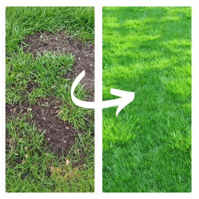 Unsere Premium-Nachsaat füllt kahle Stellen zuverlässig auf und lässt deinen Rasen schnell wieder dicht und in sattem Grün erstrahlen.