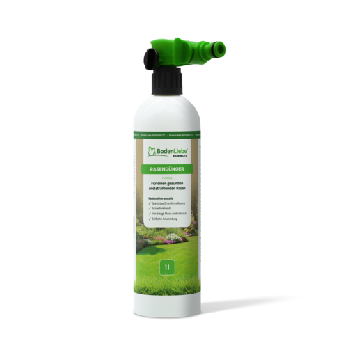 Damit Dein Rasen mit BodenLiebe wieder in sattem Grün erstrahlt, ist die richtige Dosierung unseres Flüssigdüngers RASENBLITZ entscheidend.